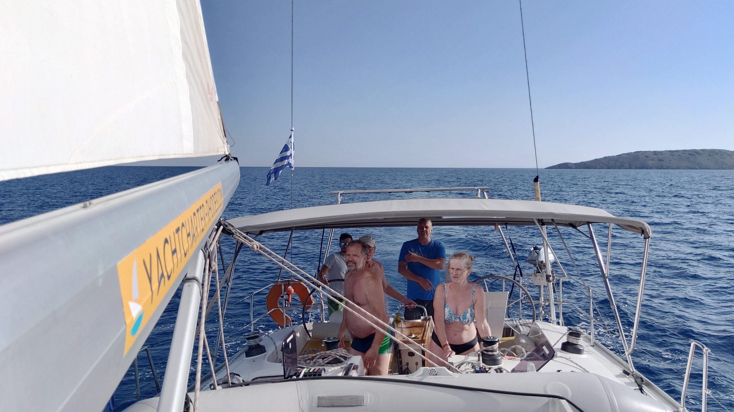 (das ursprüngliche Ziel über Mykonos nach Süden zu fahren wurde wegen technischer Defekte und über 8 bft Wind leider nicht erreicht)